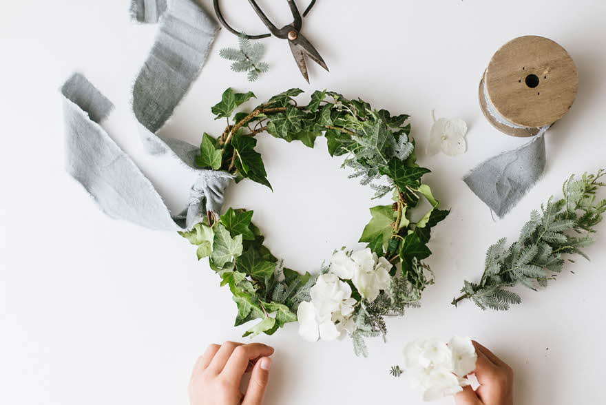 Vil du utfordre deg selv kan du lage en lekker krans helt fra bunnen. Da starter du med en ring av bøyelige greiner, litt tykk ståltråd eller en ferdig kjøpt halmkrans eller krans av pil.