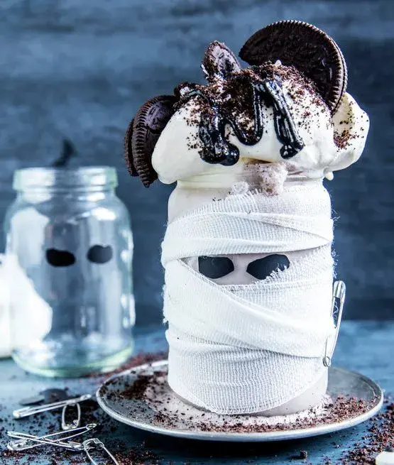 - Server i glass, gjerne toppet med pisket krem, knust oreo-kjeks og sjokoladesaus