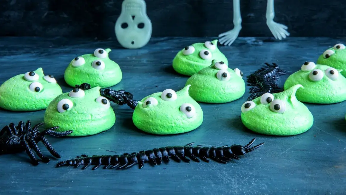 Skumle marengsmonster til Halloween – perfekte som dekorasjon til halloweenfesten, som halloweengodis eller som kakepynt på en kake eller cupcakes.
