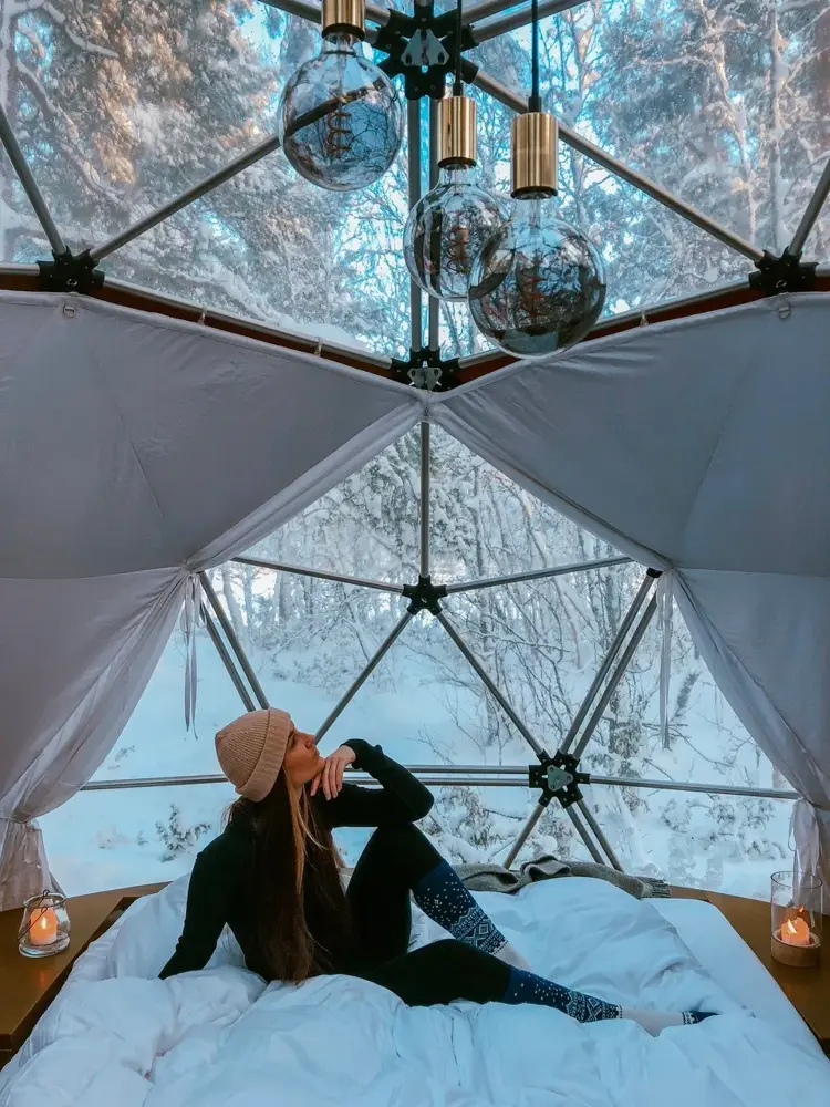 -Kan du oppleve alt fra overnatting i det fantastiske ishotellet på Sorrisniva, kjøre i velpreparerte alpinbakker, bading i Nordlysbadet, luksuriøse overnattinger i domer og lodger, hundekjøring, fatbiketurer, ribturer, nordlysjakt og fjordsafari.