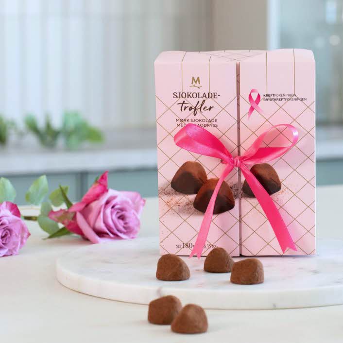 Mester Grønn har fylt opp butikken med en egen Rosa sløyfe-kolleksjon. Her finner du en fargerik Rosa sløyfe-bukett, roser, grennelliker, epledrikk, sjokoladetrøfler, servietter, kort, snittekniv og handlenett – hvor et bidrag fra salget går direkte til brystkreftforskningen.