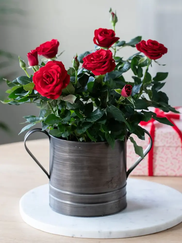 Rødt og rosa er populære farger til morsdag og Valentines. En rød potterose eller rosa lilje er gode gavetips som er lette å ta med seg, og som holder seg godt hvis du skal kjøpe gaven litt på forhånd.