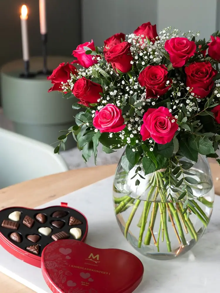 Ønsker du å legge til det lille ekstra er deilig sjokolade alltid en favoritt, og en hjerteformet konfekteske er perfekt for anledningen. Musserende alkoholfri drikke eller en frisk limonade setter også en spiss på feiringen.