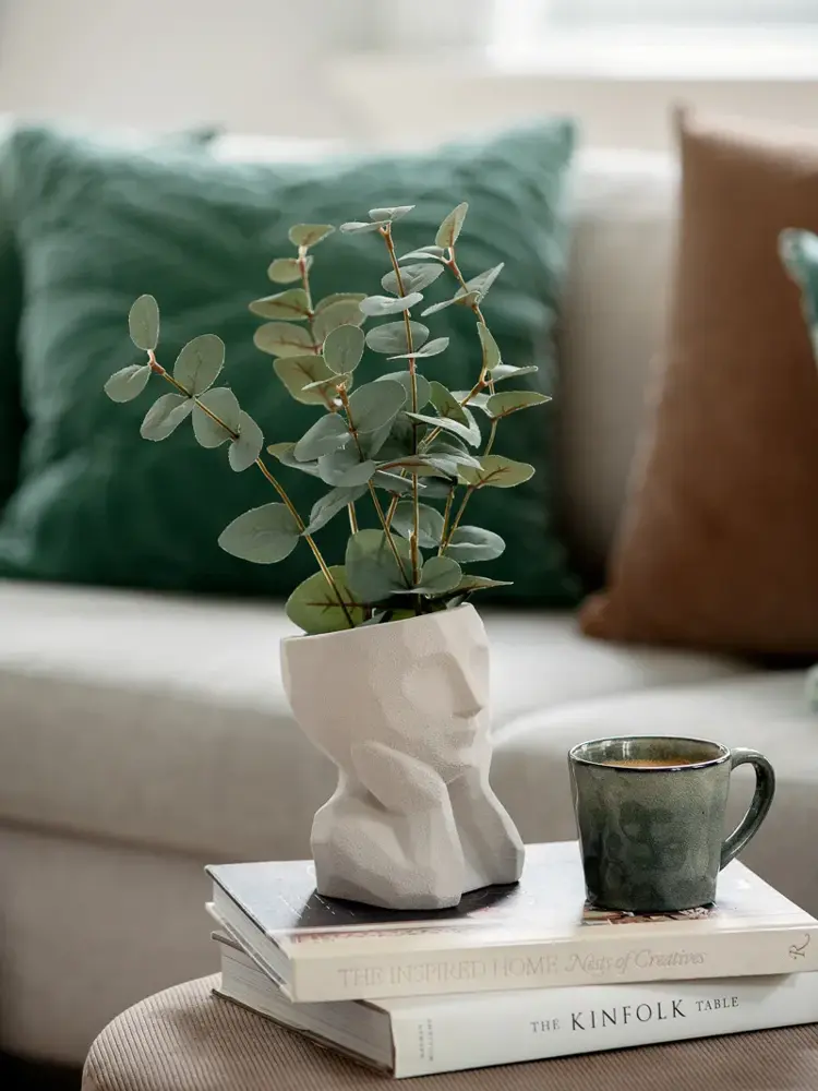 Det er fokus på myke former og naturlige farger som bringer inn ro og harmoni. Vi blander det blanke med de ru og matte overflater. Vi ser en gryende trend på mer firkantet og grafiske former som blandes med de runde og myke slik at vi får elegant uttrykk. Miksen mellom stramt og det organiske vil tre sterkere frem i tiden som kommer.