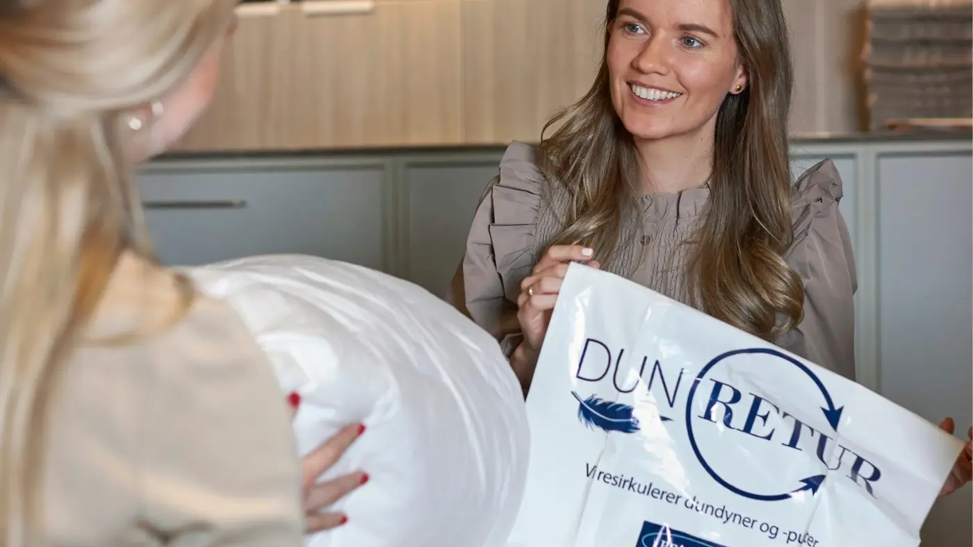 Dunen i returproduktene vaskes, sorteres og brukes som fyll i nye produkter som f.eks. dundyner eller dunjakker. Trekkene er ofte slitt og kan ikke gjenbrukes som trekk, men med ny teknologi resirkuleres de til isolasjonsmateriale til bygninger. Vi synes det er flott at gode materialer kan gjenbrukes og varme på nye måter!