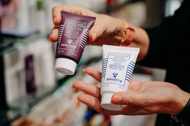 – Jeg har testet ansiktsmaskene fra Sissley, og denne her som heter Velvet sleeping mask er fantastisk. Du våkner opp neste morgen med fløyelsmyk hud, på ordentlig!