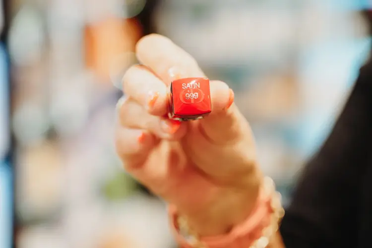 – Rød leppestift bør man ha, og denne her fra Dior har verdens flotteste rødfarge. Den heter 999 og har en klar rødfarge. Har du den leppestiften og en sort kjole så trenger du ikke noe mer.
