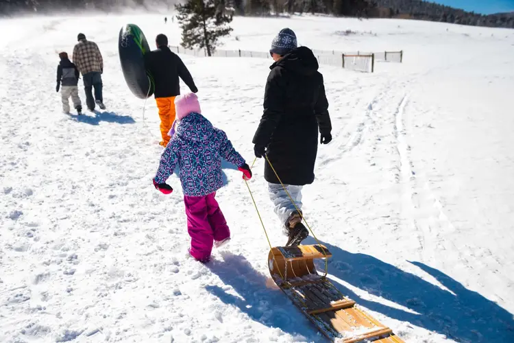 Har du ikke akebrett, kan baderinger eller badedyr være vel så artig. Aking er også en fin kveldsaktivitet, hvis du tar med hodelykter og refleksvester.