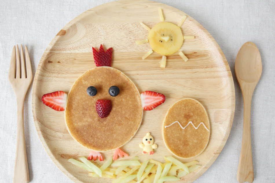 Pannekaker er en slager hos de fleste – både små og store. Det er ikke den vanligste frokostretten til hverdags, og det er derfor ekstra gøy å servere det i påsken. Lager du amerikanske pannekaker er det lett å være kreativ. Disse pannekakene er nemlig tykkere enn vanlig pannekaker og derfor enklere å forme slik du ønsker. Hva med å lage en påskehare sett bakfra, slik som vist på bildet? Du kan også prøve deg på en enkel påskekylling med frukt som pynt.