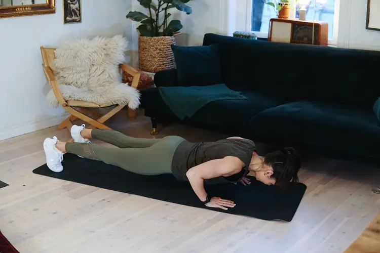 - Når du har senket deg helt ned til du så vidt treffer gulvet, skal du skyve deg eksplosivt opp til utgangsposisjon.