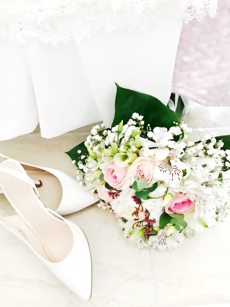 - Finn ut hva du ønsker av tilbehør til brudekjolen, og planlegg og gå til innkjøp av dette – som sko, strømper, slør, undertøy, hårpynt, smykker og lignende. Kanskje kommer du til å trenge en jakke eller cardigan utover kvelden? Eller et par dansevennlige sko du kan skifte til etter middagen?