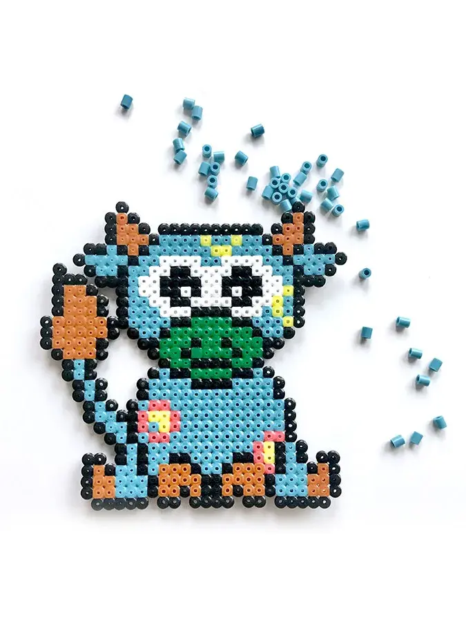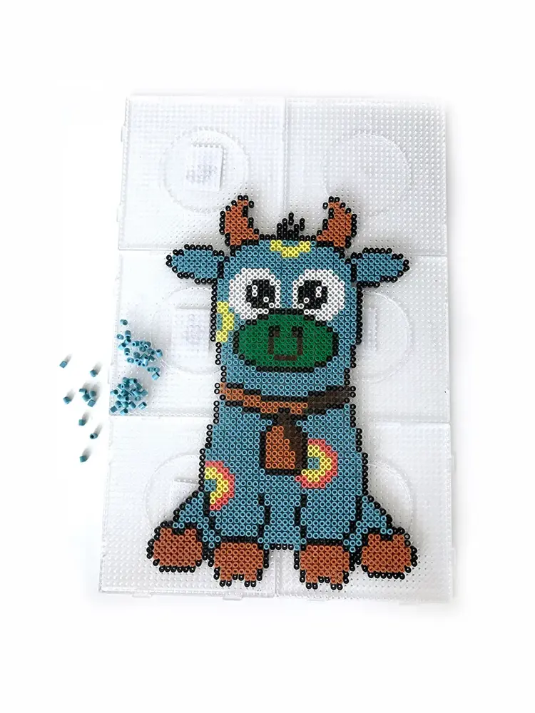 Når du er ferdig, legger du bakepapir over figuren og smelter perlene med et strykejern til de henger sammen. Dra figuren din forsiktig av perlebrettet, la de avkjøle seg litt, og vips – du er ferdig!