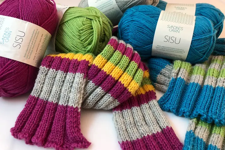 *Sisu er et robust garn. Om du ønsker å bruke et mykere garn, kan du velge en garntype i tilsvarende tykkelse i ren ull. Sisu er et superwashbehandlet garn, som er velegnet til maskinvask. Det finnes flere garntyper i ren ull som er superwashbehandlet, og det kan være greit å bruke det slik at skjerfet lett kan vaskes. Spør gjerne i din garnbutikk om et anbefalt alternativ. Følg alltid garnets vaskeanvisning.