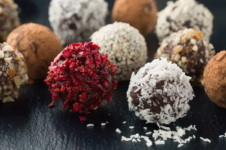 - Dypp kulene i smeltet sjokolade og rull dem i strøssel, kokos, sjokoladepulver eller andre ønskelige godsaker.