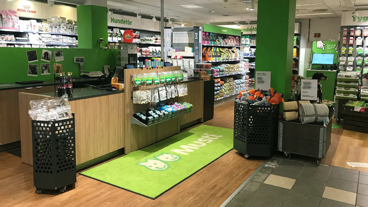 Vår største ressurs er våre medarbeidere i butikken. 99% av våre over 1000 medarbeidere har kjæledyr hjemme – dette er det vi brenner for. Å jobbe i Musti er mer enn en jobb, det er vår lidenskap. Vi er privilegerte fordi vi jobber med noe vi er glad i. Dette håper vi alle våre kunder legger merke til og setter pris på i butikken. For oss i Musti er vi særlig opptatt av 3 ting; det skal være enkelt å handle hos oss, det skal være trygt å få våre råd og å kjøpe våre produkter, og til sist skal det være gøy. Hos oss sitter smilet og latteren løst.