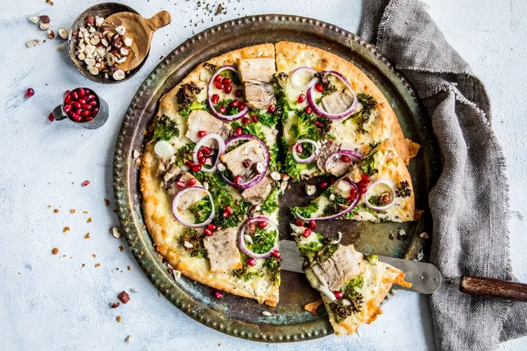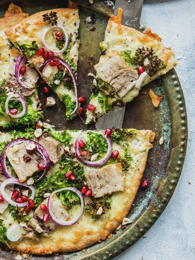 Når vi har lagt julaften og helligdagene bak oss er det duket for en ekte romjulspizza. Du kan bruke rester av ribbe, grønnkål, hasselnøtter og annet snadder. Pizzadeigen kan du lage selv eller kjøpe den halvstekt.