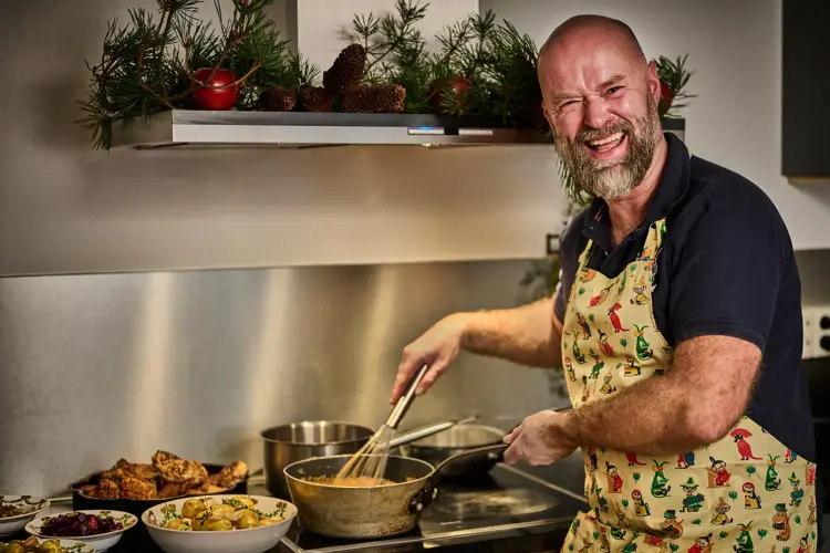 Tilsmakt med hvitløk og karri. Servert med fisk, reker og finskårne grønnsaker. Imponer gjestene med Inge Andas beste fiskesuppe.