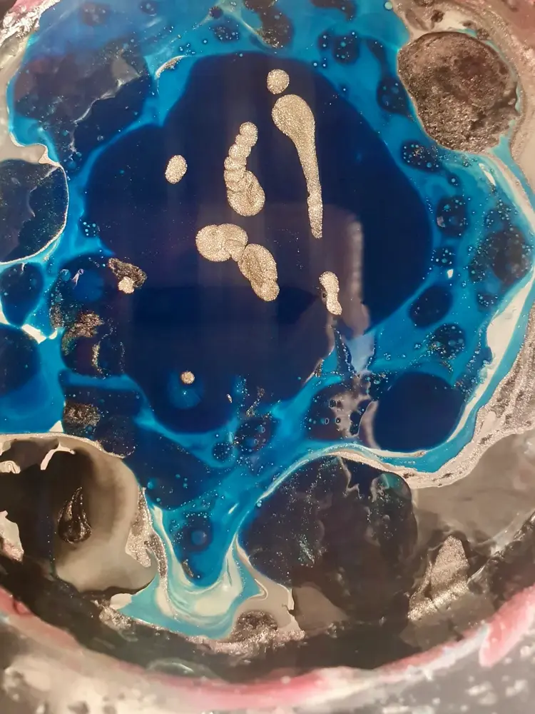 4. Dypp lyset (raskt) i beholderen. Marmormønsteret vil umiddelbart bli synlig på stearinlyset.