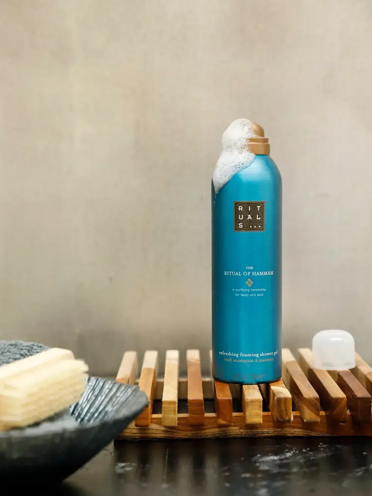 Hammam er en av de eldste vasketradisjonene i verden. Det er en rensende dampbadopplevelse for både kropp og sjel. Rituals har latt seg inspirere av denne eldgamle skikken, og har utviklet en moderne Hammam-kolleksjon for hjemmet ditt. Lukk øynene dine og kjenn varmen av din egne personlige velværeseremoni.
