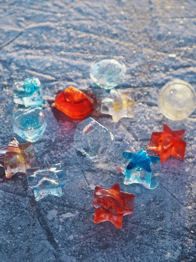 Skattejakt slår aldri feil, og kan gjøres i utallige varianter! I dette tilfellet skal barna finne fargerike isbiter som du på forhånd har gjemt i hagen eller på et uteområde i nærheten. Isbitene lager du med vann og konditorfarge eller med saft, gjerne i ulike farger dersom du har mulighet til det. Lag deretter et skattekart som barna skal bruke til å lokalisere isbitene. Dette kan være så enkelt som å tegne hus og andre større ting som garasje, hekk eller trær, slik at barna enkelt kan forstå hvor de skal lete.