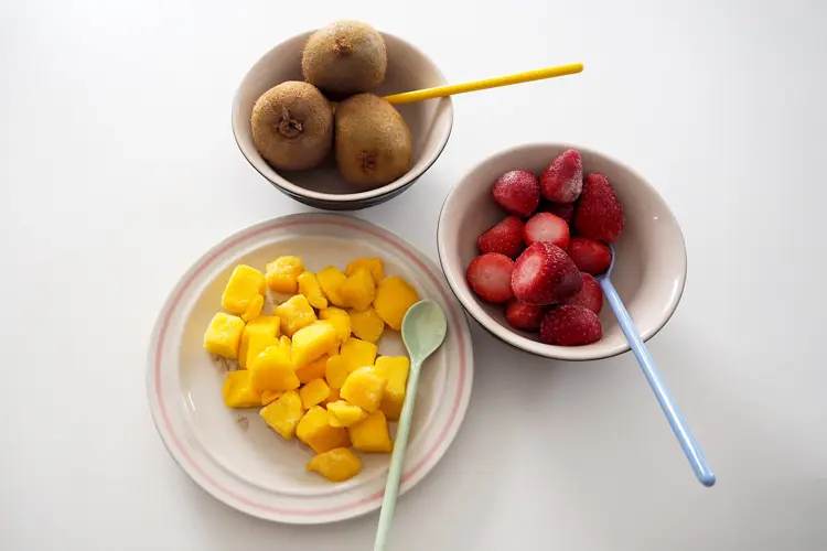 Har du sett en mer fargerik is? Denne inneholder både kiwi, mango og bringebær, og vi kan love deg at den vil bli en favoritt hos de minste! Vil du heller ha en is med bare mango, øker du bare mengden av denne ingrediensen og dropper det andre. Du kan også bytte ut bringebær med for eksempel jordbær.