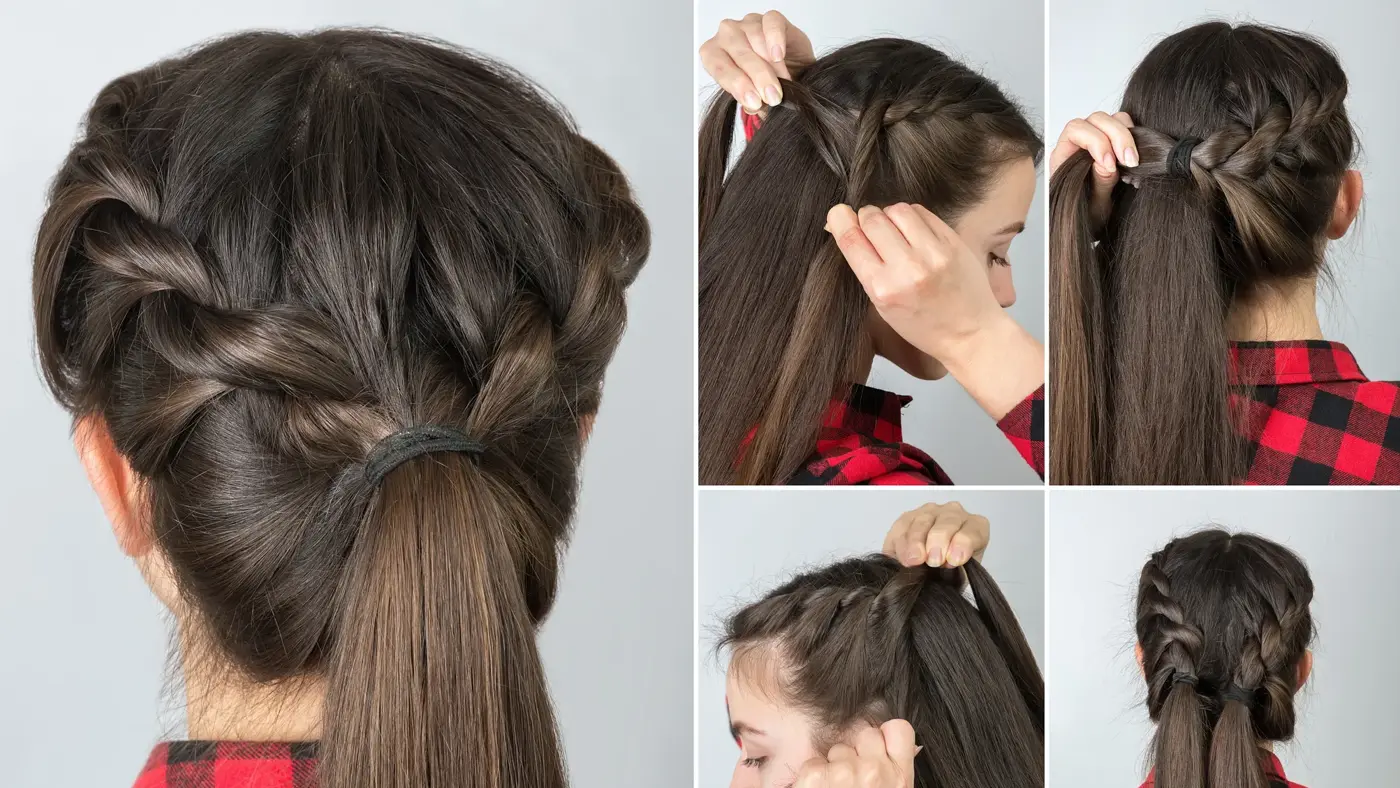 simple twisted hairstyle tutorial step by step. Easy hairstyle for long hair. Pony tail with braid. Hair tutorial