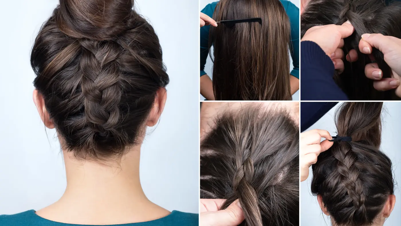 modern hairstyle reverse braided bun. Hairstyle tutorial for long hair. Hairstyle. Tutorial. Upside down french braid with bun. Braided bun