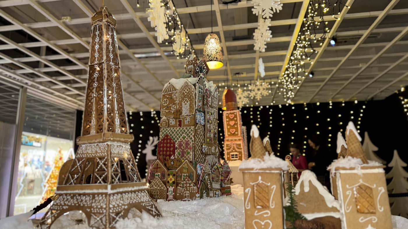 Butikkene på senteret har laget fine pepperkakehus som står utstilt i en koselig pepperkakelandsby i 1. etasje på AMFI Moa syd, ved siden av Mani.