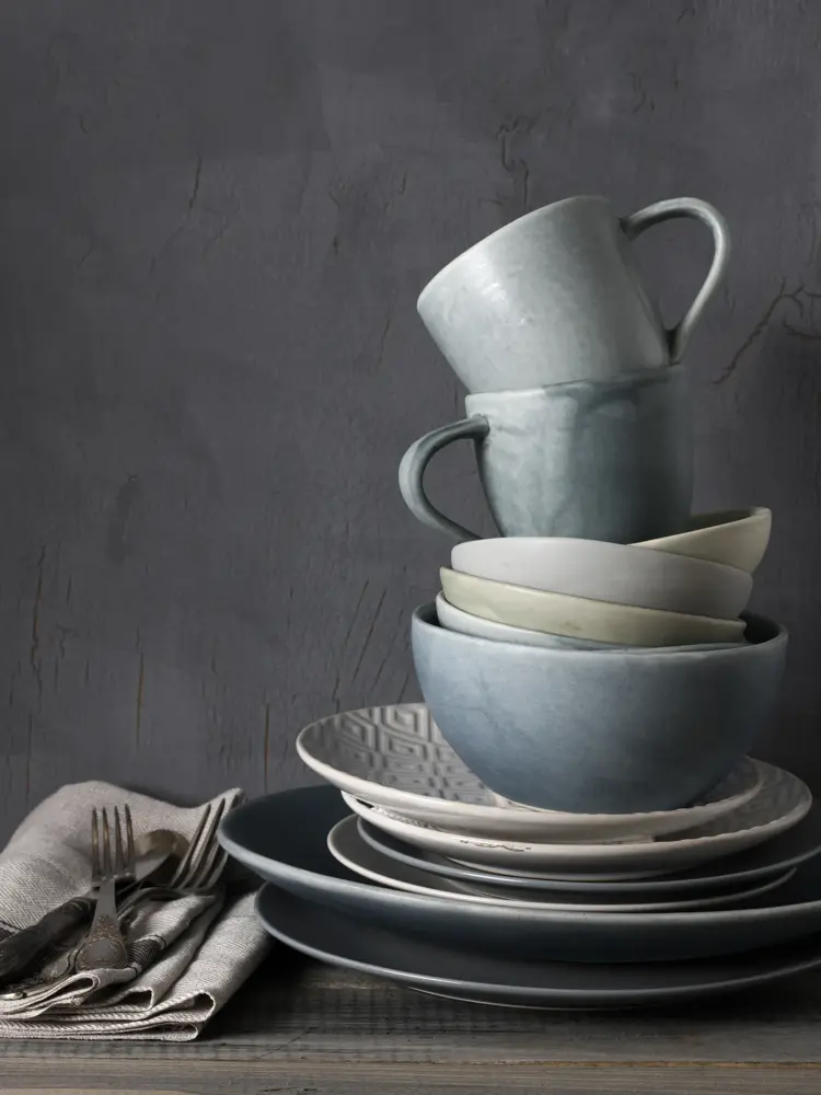 Kjøkkenet følger interiørtrendene denne høsten, med servise i farget keramikk og serveringsprodukter i tre. Skap din egen stil med en miks av farger og materialer du er glad i – og server gjerne noe fargerikt og sunt også!