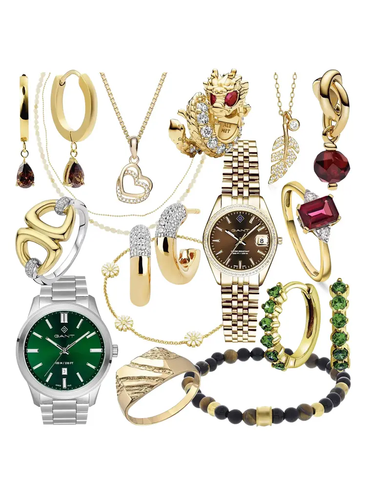 Øredobber Bjørklund 499,- / Halskjede Aseco Gull & Sølv 998,- / Halskjede Gullsmed Egil Kvamsås 999,- / Charm Gullsmed Stamnæss 999,- / Halskjede Bjørklund 699,- / Charm Gullsmed Stamnæss 799,- / Ring Aseco Gull & Sølv 1998,- / Øredobber, Sifs Jacobs Mestergull 1199,- / Klokke, Gant Bjørklund 2999,- / Ring Gullfunn 9499,-/ Herreklokke, Gant Gullsmed Stamnæss 2399,- / Ring til herre Gullsmed Stamnæss 10770,- / Armbånd, Georg Jensen Mestergull 2300,- / Øredobber, Pan Jewelry Gullfunn 549,- / Armbånd Gullfunn 399,-