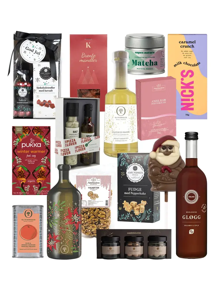 Til alle dem som elsker å kose seg, og hvem gjør ikke det? Vellagret olivenolje, deilig gløgg og pizzakrydder er noe alle kan glede seg til å bruke. Sjokolade eller trøfler som smelter på tungen er til alle som liker noe søtt. Te som lukter jul, brente mandler, lakris eller nøtter er alle fine små gaver det er lett å bli glad for. Eller hva med matcha, årets trendy grønne te? Dette er også fine gaver til vertskapet om du er invitert bort i julen.