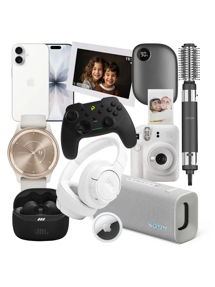 Praktiske og nyttige gaver – eller gaver som bare gjør livet litt morsommere. Det kommer stadtig nye og spennende tech-produkter du kan legge under juletreet. En skånsom og effektiv hårføner, en god rettetang eller krøllbørste er flotte gaver til de hårbevisste. En iPhone 17 står nok øverst mange ønskelister, eller du kan gå tilbehør som hodetelefoner, bærbar høyttaler, powerbanke eller ørepropper. Polaroidkamera har fått sin renessanse og er en veldig kul gave. En digital fotoramme fylt med gode minner fra året som gikk, er også en nydelig og personlig gave.
