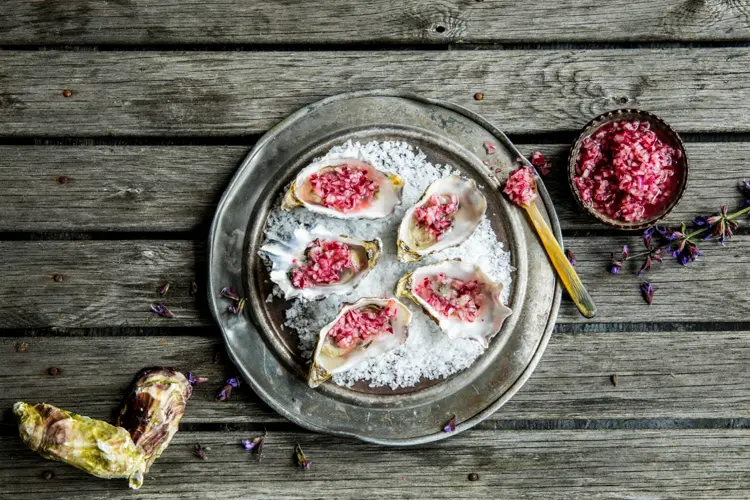 Østers med rødløksvinaigrette