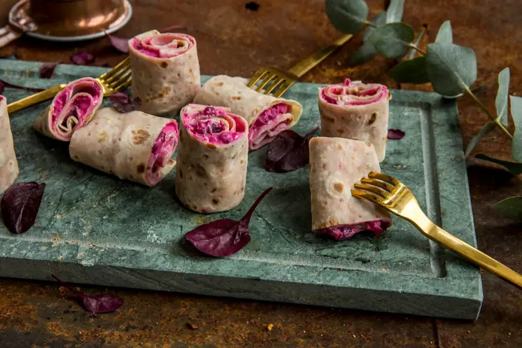 Lefserull er alltid populært, og disse knallgode rullene med rødbetsalat og lammerull er supre som appetittvekker eller som én av flere juletapasretter.