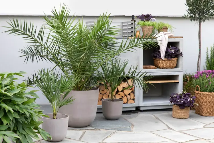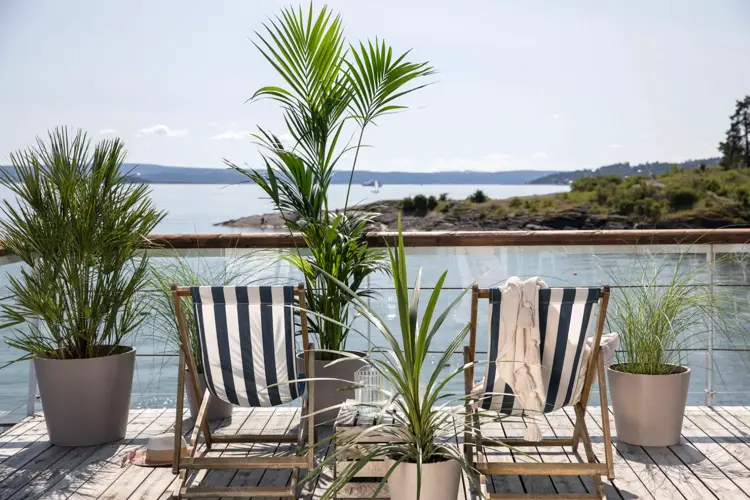 Drømmer du om sydenstemning på balkongen eller en frodig oase i hagen? Da kan du fylle hagen med oliventrær, palmer, lavendel og velduftende urter. Terrassepalmer tåler noen minusgrader og håndterer godt vær og vind. De trives godt i krukker, så de passer godt både på balkong og i hager. Oliventrær er en klassisk middelhavsplante, og sammen med lavendel skaper det en sydlig stemning. Krukker eller bed med urter som rosmarin og timian er med på å forsterke middelhavsstemningen. Og da er det bare å sette seg ned og nyte sommeren ute.