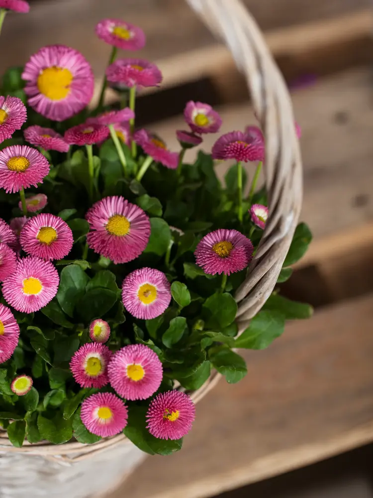 Tusenfryd er en enkel og flerårig plante som ikke trenger mye stell. Den tåler kulde og kan fint plantes ute nå. Den passer spesielt godt i ytterkanten av større pottebeplantinger, eller alene i små krukker på en balkong.