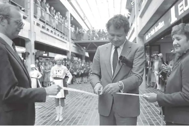 Styreleder Anton O. Dale var fremsynt i sin tale under åpningen av Moa Butikksenter i 1983.
