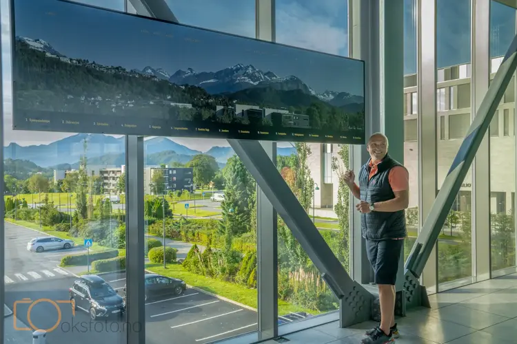 Når du står på broa ved Ticket, vil du nå finne flott panoramabilde med navn og høyde på fjelltoppene i Ålesund. Du finner panoramabildet på broa mellom øst og syd. Foto: Øyvind Kåre Sunde