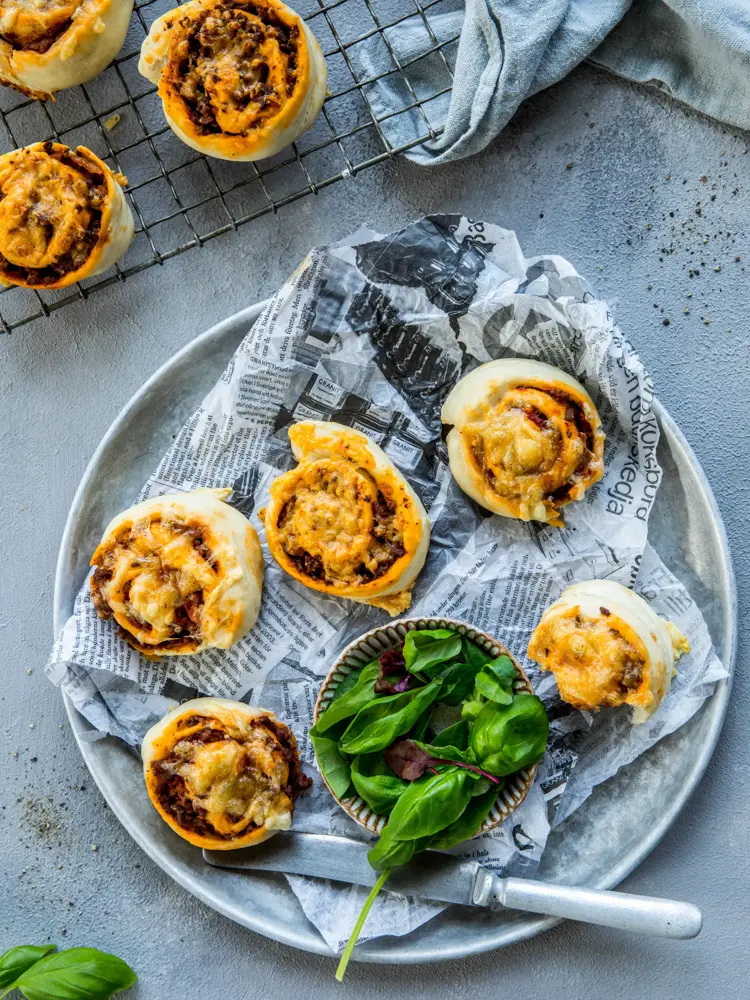 Etterhev pizzasnurrene i ca. 10 minutter. Stek på 225 °C i ca. 15 minutter.