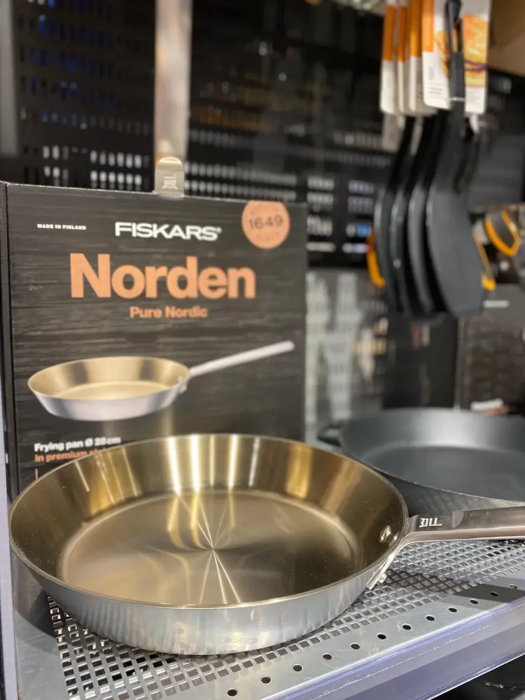 Støpejern er en favoritt fordi det tåler veldig høy varme, er enkel å rengjøre og beskytter mot rust. Favoritten er Norden-serien til Fiskars. Her får du både lekkert design og super kvalitet. Serien er laget i Finland med lite klimaavtrykk.