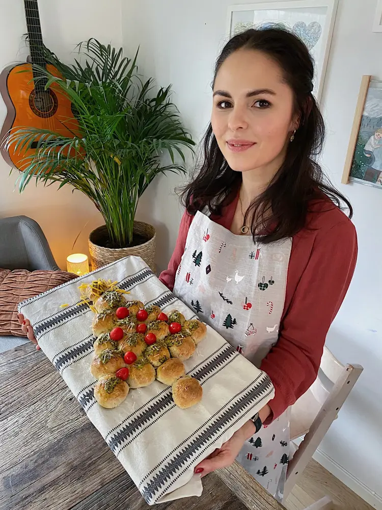 Dette spiselige juletreet passer perfekt til varme middager som supper og gryter, eller bare som snacks til helgen. Vi har valgt å fylle juletreet med fersk mozzarella, men du kan selvfølgelig bytte det ut med noe annet godt du liker. Hva med å blande inn litt urter eller en av dine favorittoster?