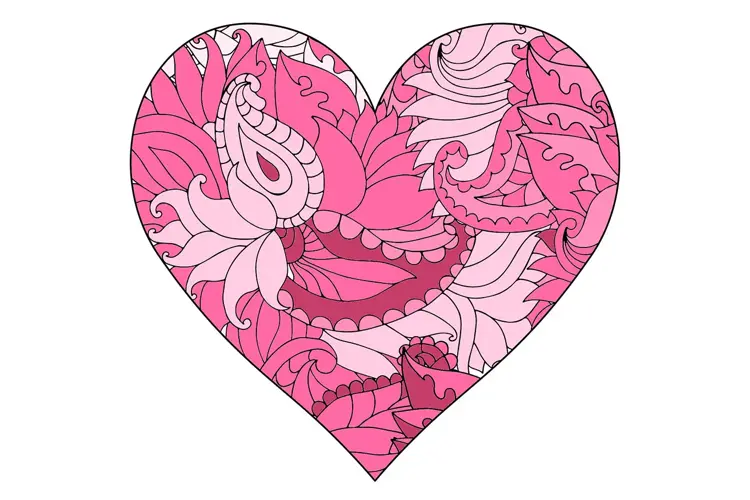 Mønstret hjerte fargelagt i rosa