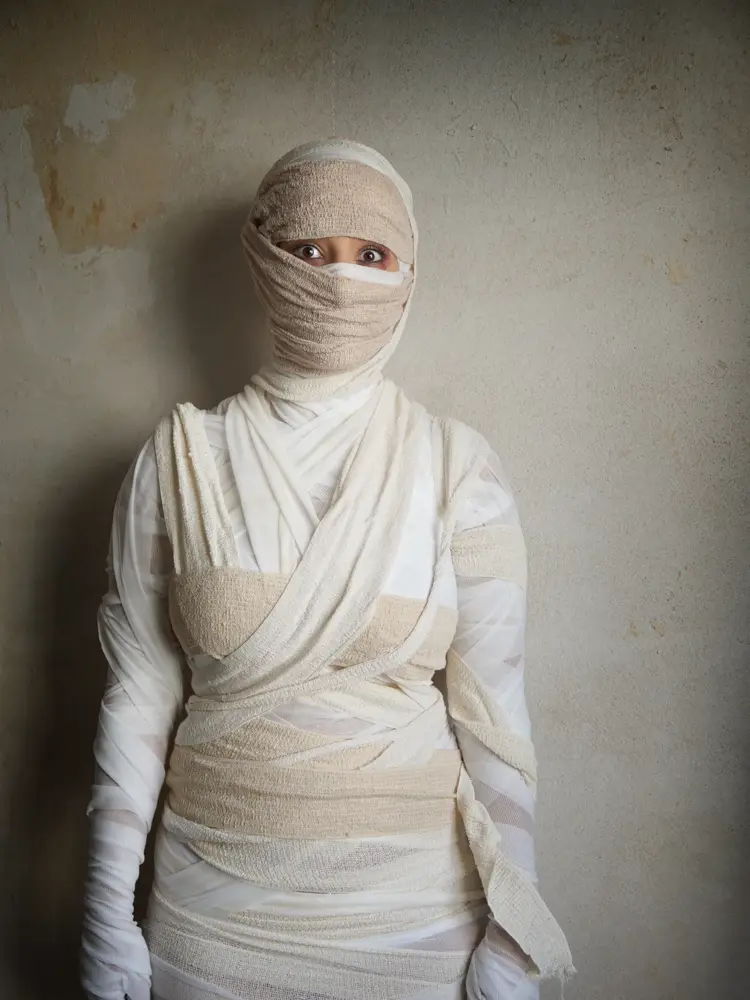 Et mumiekostyme ser kanskje avansert ut, men vi kan love deg at dette kostymet er gjort på 1-2-3. Og det beste av alt; det krever svært få ting. Du trenger bare en hvit t-skjorte eller genser, hvit strømpebukse eller bukse, bandasje og litt sportsteip.