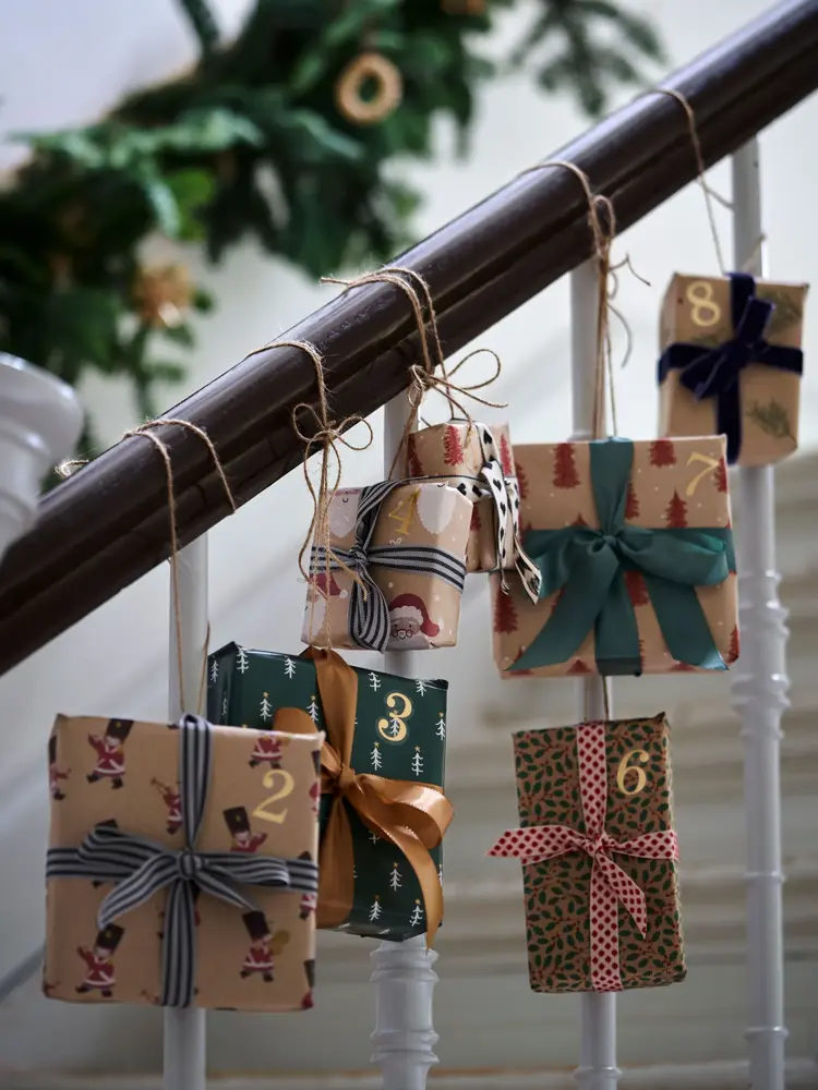 Og hvem sa at pakkene ikke kan stå fremme? Har du laget pakkekalender kan det være fint å gjøre pakkene til en del av juleinteriøret, heng de opp med litt hyssing rundt et gelender eller legg de i en dekorativ kurv.