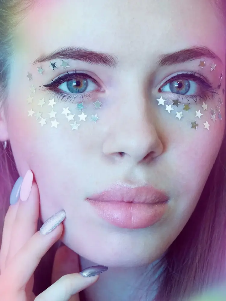 Når du sminker deg med glitter velger du selv hvor tett og hvor mye du legger. Du kan pakke glitteret tett på øyelokkene, eller drysse det flere steder i ansiktet. I tillegg til på øynene er glitter fint langs kinnbena, over neseryggen eller i tinningen.