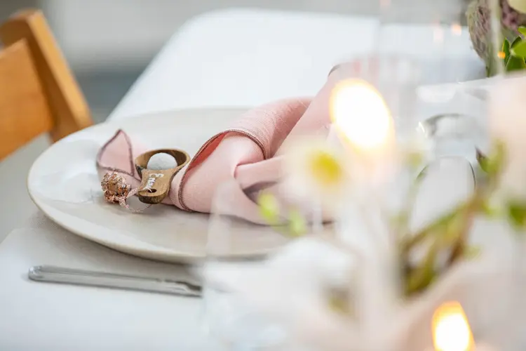 – Jeg liker det asymmetriske og uperfekte, sier Andersen, og danderer de støvrosa linserviettene i løse knuter på de beige tallerkenene på bordet.