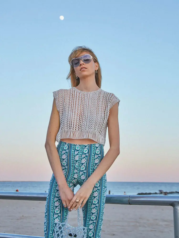 Ifølge stylisten er croptop på moten i sommer, og hvis du går for en myk variant og bruker den til en matchende tights, så har du et kult og komfortabelt hytteantrekk.