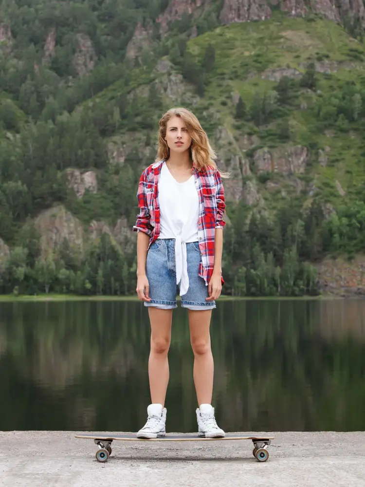 – Flanellskjorte over bikini sammen med cargobukser er så fint, sier stylisten.