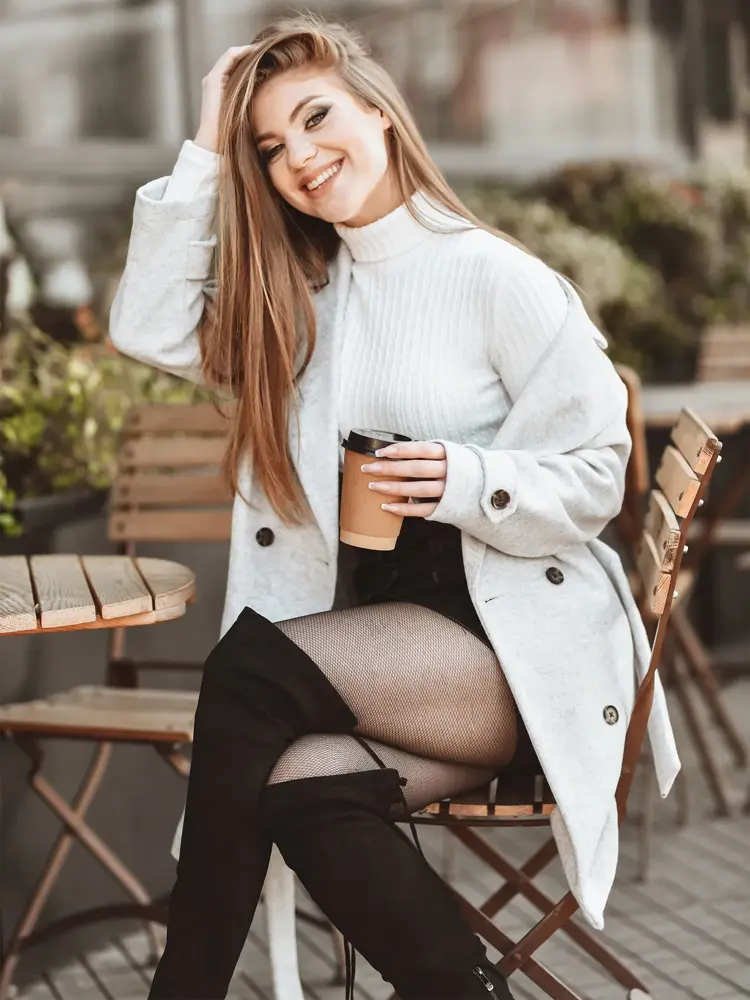 – Har du en helsort kjole under en beige kåpe, kan en kul, mønstret strømpebukse virkelig sette prikken over i-en på antrekket!