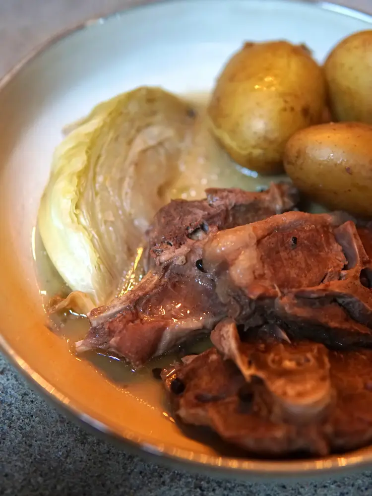 - La fårikålen trekke på svak varme til kjøttet løsner fra beinet (ca. 2-3 timer)